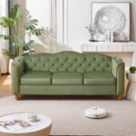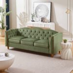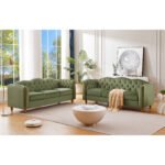 3 Seater Velvet Button Upholstered Couch – Green