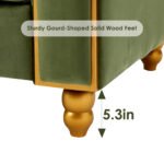 It is made of high-quality wood and rests on solid wooden legs in golden color. This large upholstered sofa is wrapped in velvet , soft and skin-friendly engineered fabric, and a seat cushion filled with high-elastic foam, which provides comfortable support for your body when sitting and easily recovers its shape when you stand up. The sturdy wood legs allow the sofa couch to easily support 800 pounds of weight, adding stabili