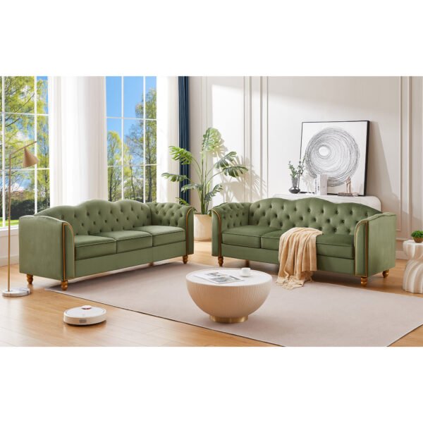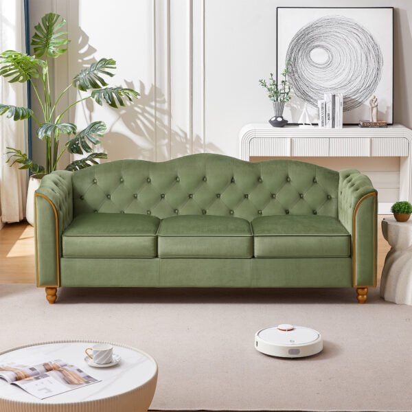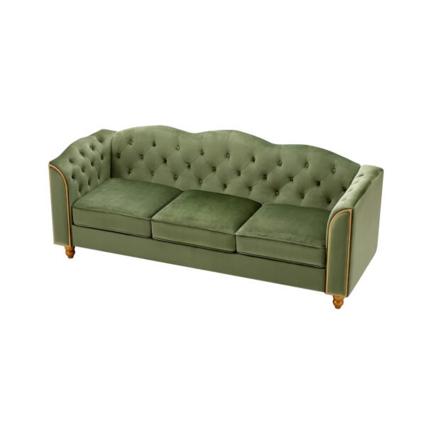 3 Seater Velvet Button Upholstered Couch – Green