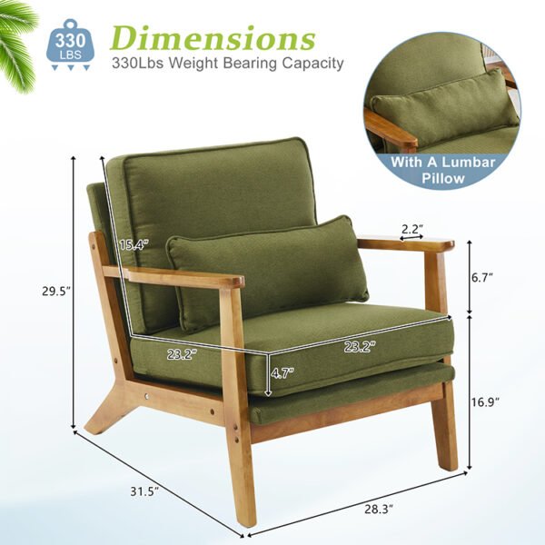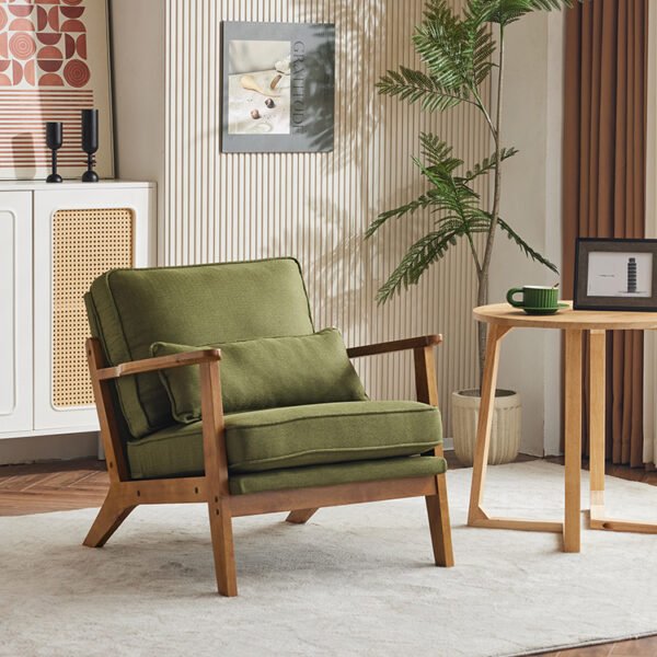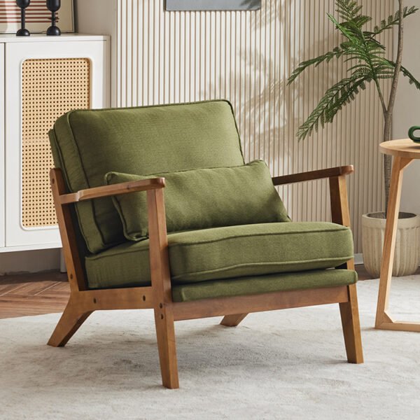 Introducing our exquisite Solid Wood Frame Accent Chair, a perfect blend of comfort and elegance. Crafted with precision, it features a luxuriously soft cushion for both seat and backrest, with a lumbar pillow for added support. Wide armrests provide ample space for resting your arms. The ergonomic design incorporates a gentle rearward tilt for better posture. Available in a range of skin-friendly fabrics and colors, it effortlessly matches any style or decor. Versatile for home offices, living rooms, or commercial settings like cafes and lounges, this accent chair elevates any space with its timeless appeal and exceptional comfort. Experience the perfect balance of style and comfort with our Solid Wood Frame Accent Chair.