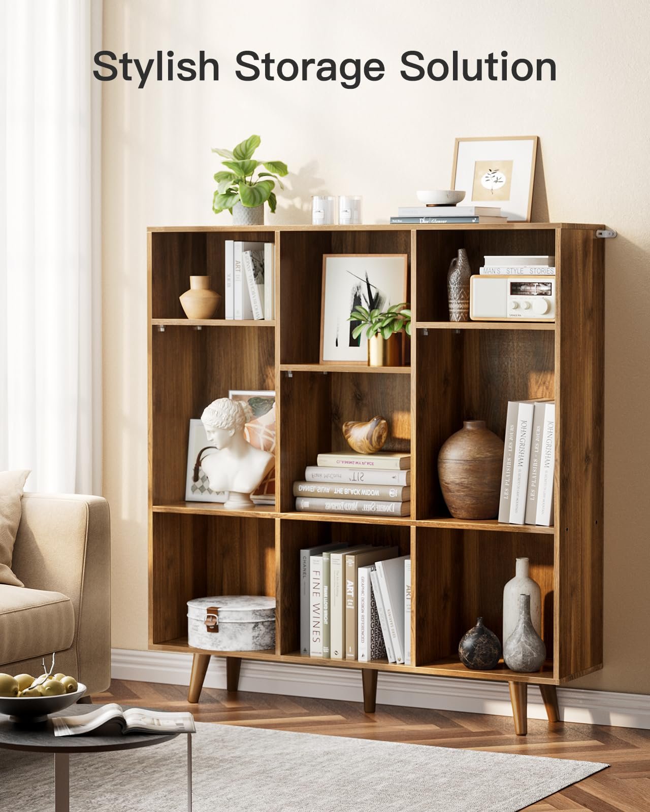 Easy Access & Organization: Our 9-cube bookcase allows you to organize books and collectibles with ease. The book shelf features an open cube. offers generous storage capacity while only occupying a small footprint (39.4″ W x 42″ H x 9.6″ D).