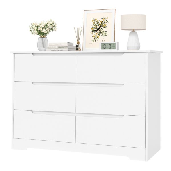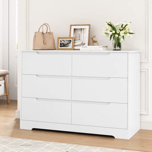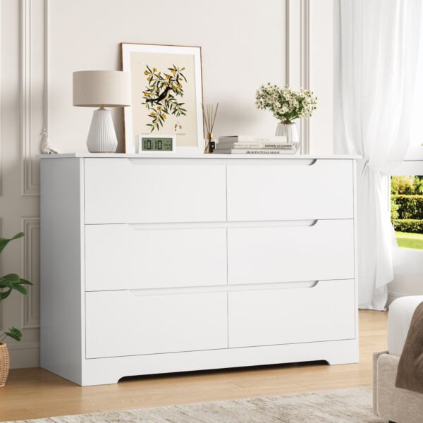 Plenty of Storage Space – Our white dresser with 6 drawers offers ample private storage space to keep your belongings organized. The spacious open tabletop serves as a great display area for decorative items and additional storage, making it an ideal furniture piece to create a clean, stylish, and comfortable living space.