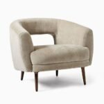 Accent chair by DNF-This rounded, yoke-backed chair is inspired by the luxe decor of a mid century cocktail lounge. With its exposed wood detailing, generously cushioned