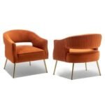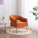 Accent chair by DNF – This rounded backed chair is inspired by the luxe decor of a midcentury simple sleek design dining chair with its exposed wood detailing, generously cushioned